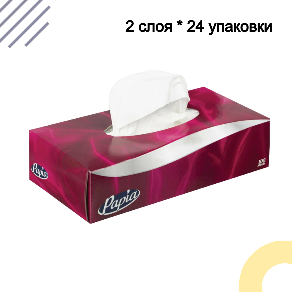 Купить Салфетки бумажные Papia 5055478 в коробке, двухслойные 100 листов, 1 упаковка - 24 шт.