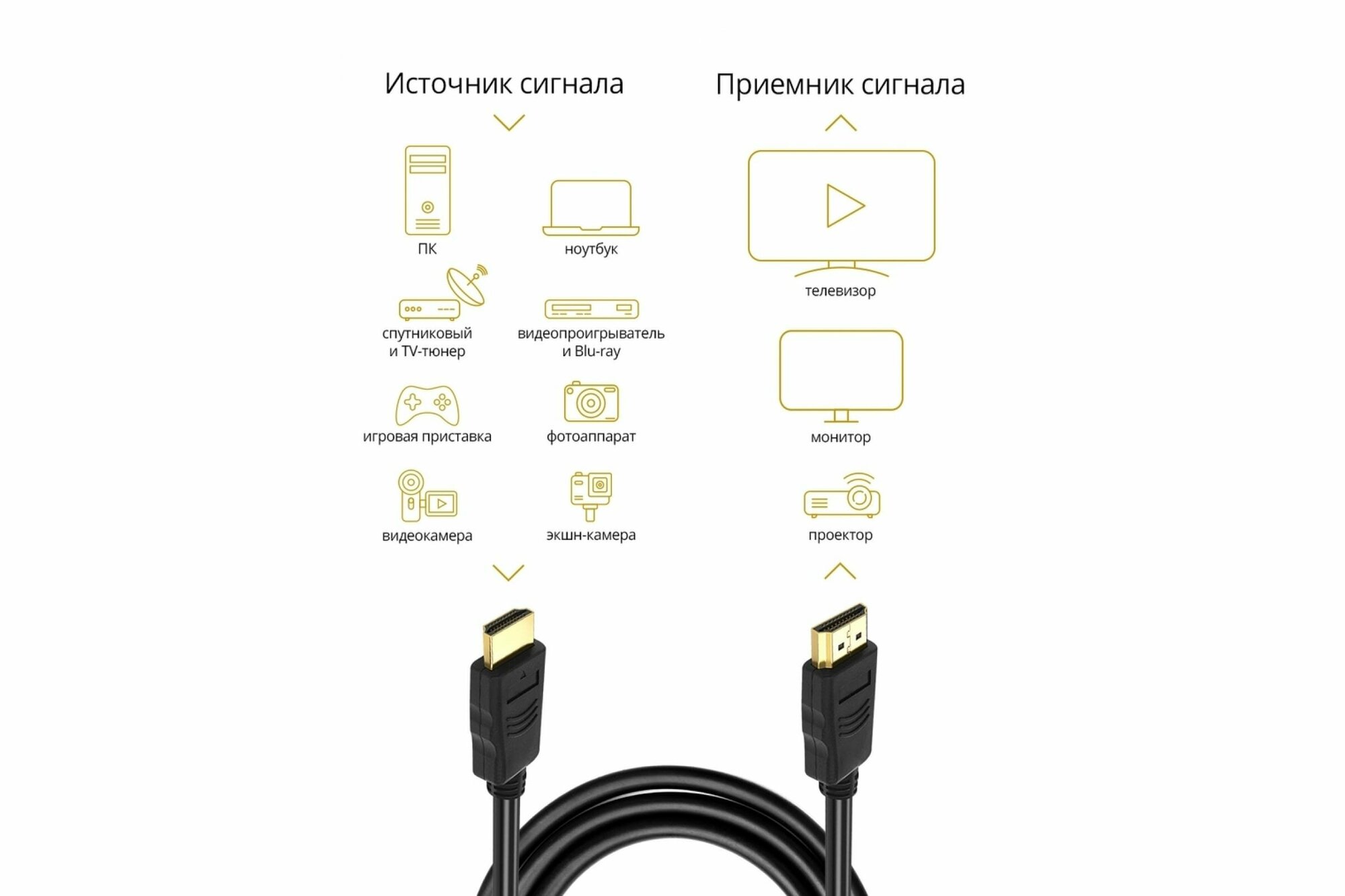 | Разъемы кабеля | HDMI (M) - HDMI (M) |
