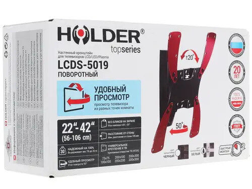 Кронштейн для телевизора Holder LCDS-5019, 22-42", настенный, поворот и наклон, черный