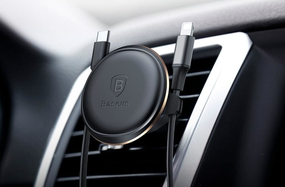 Автомобильный держатель на воздуховод BASEUS Magnetic Air Vent with Cable Clip, Золотистый+Черный