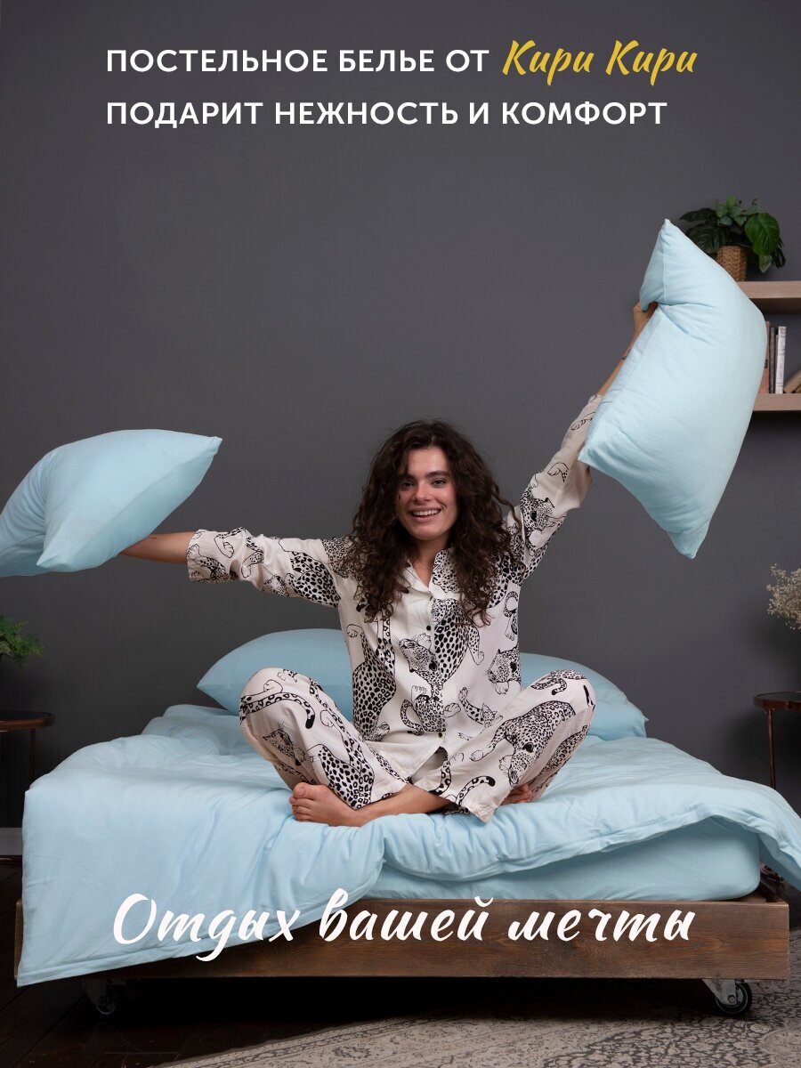 Пододеяльник евро KUPU-KUPU трикотажный на молнии 200х220 см, ментоловый