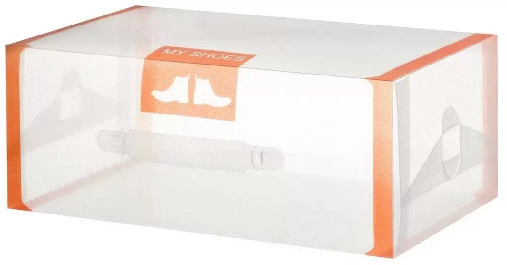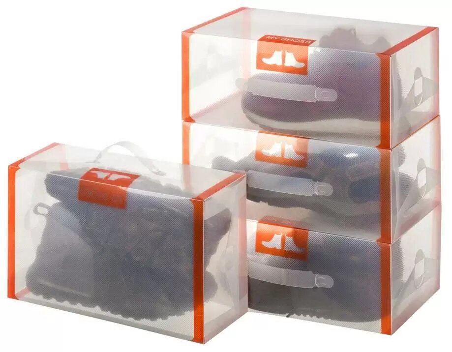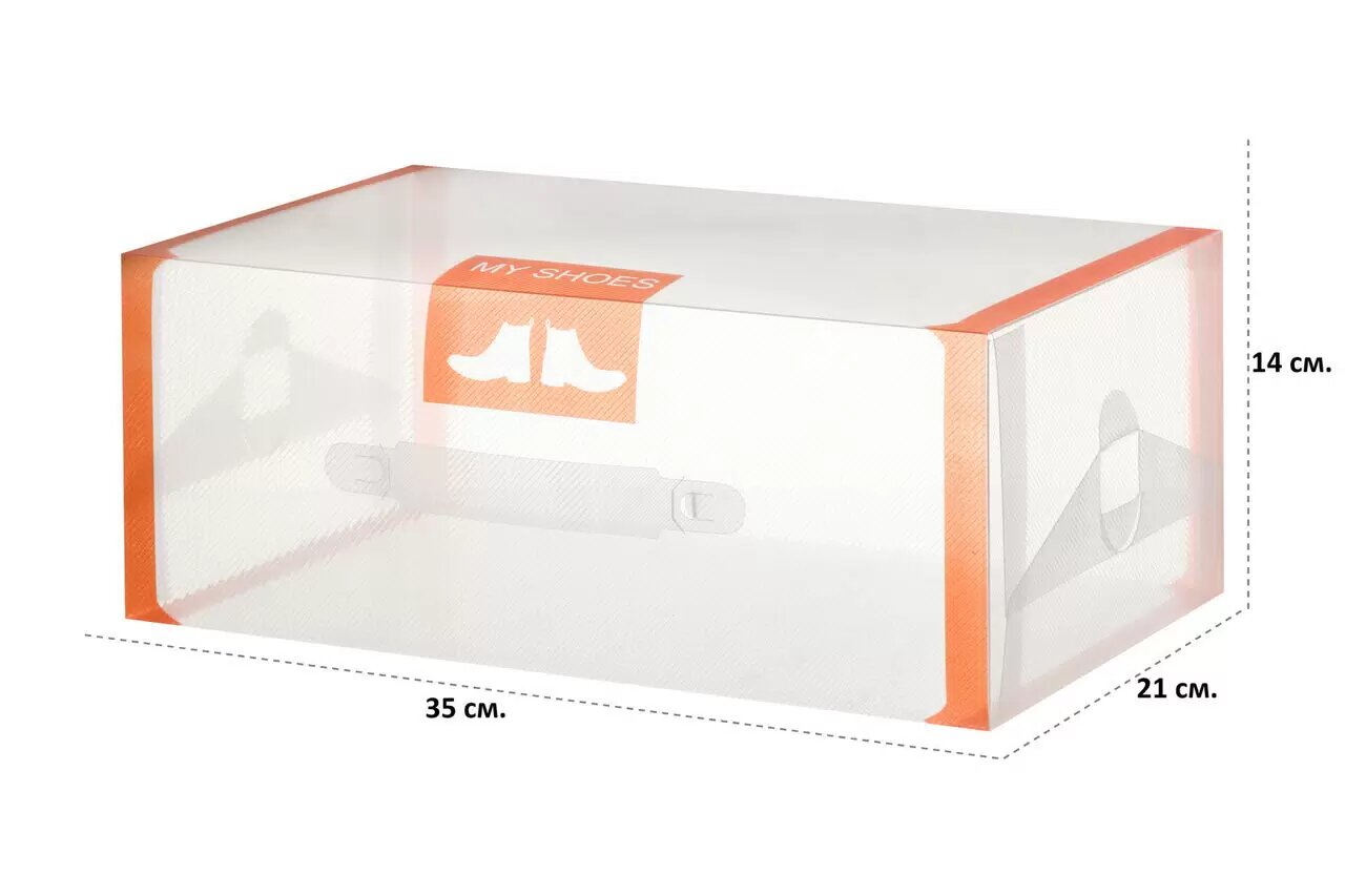 Коробка 4 шт для хранения мужской обуви 35х21х14 см EL Casa Прозрачные с оранжевой каймой с ручкой