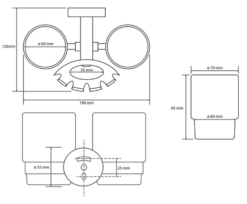 Стакан для зубных щеток двойной с держателем Bemeta OMEGA 104110042