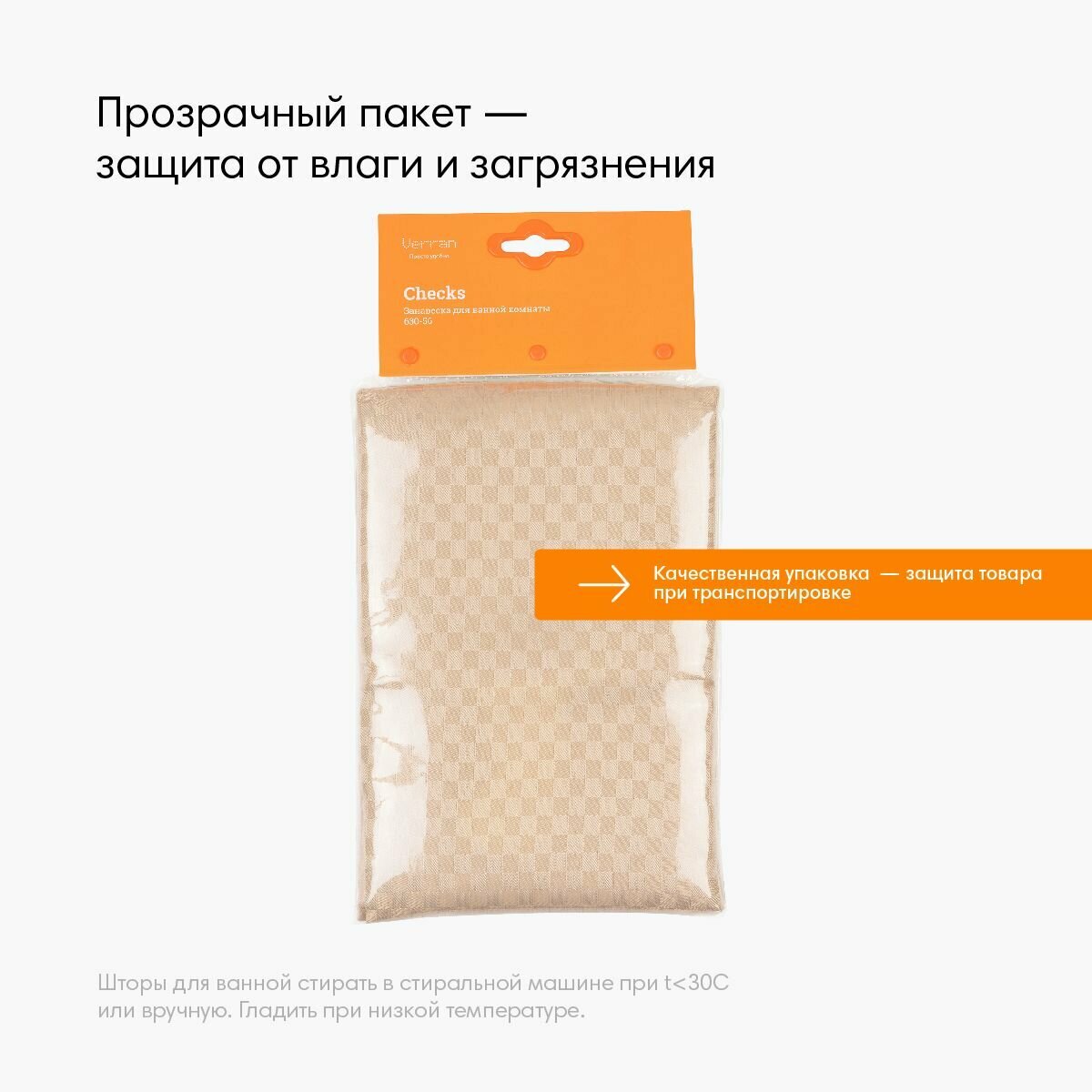 СохранитьШтора для ванной и душа водонепроницаемая бежевая тканевая 180х180, Checks интересное:
