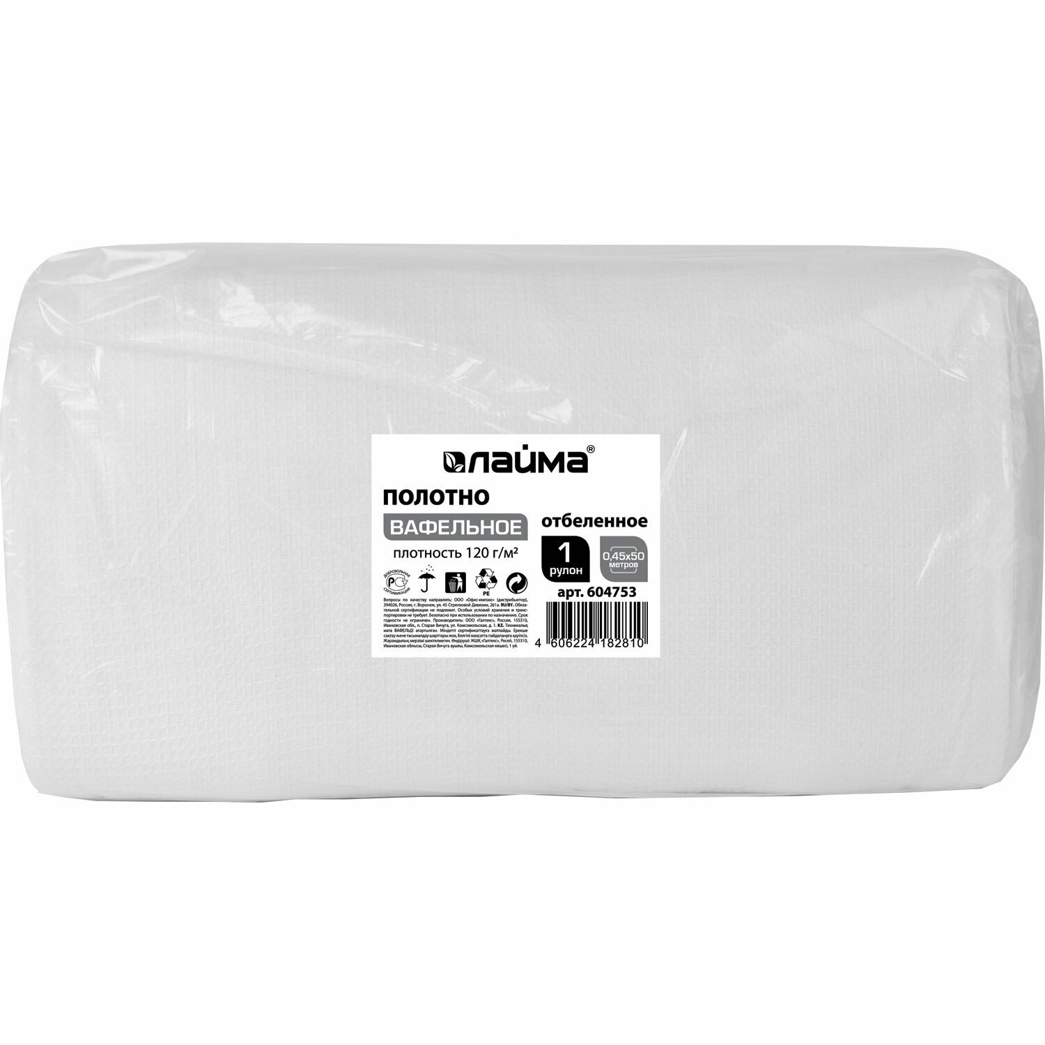 Полотно вафельное отбеленное, рулон 0,45х50 м, плотность 120 (±10) г/м2, LAIMA, 604753, ГС В комплекте: 1шт.