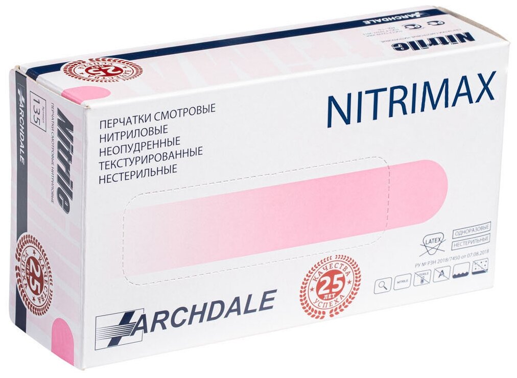 Купить Перчатки смотровые Archdale NitriMAX, 50 пар, размер: XL, цвет: розовый, 1 уп.
