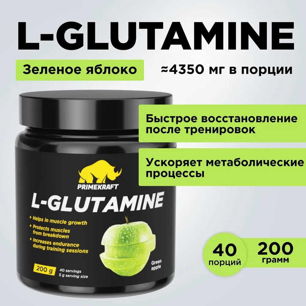 Аминокислота Prime Kraft L-GLUTAMINE (зелёное яблоко), банка, 200 гр.