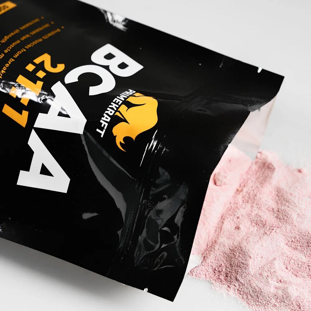 Аминокислоты PRIMEKRAFT BCAA 2:1:1 (БЦАА) со вкусом клубника (strawberry), дойпак, 500 гр