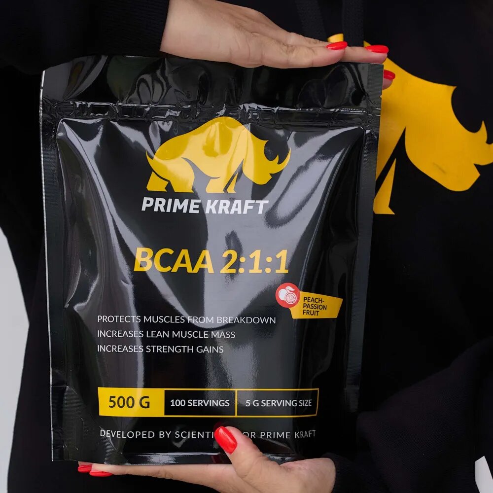 BCAA спорт питание порошок 500 гр, PrimeKraft BCAA 2:1:1 , вкус: - персик , маракуйя