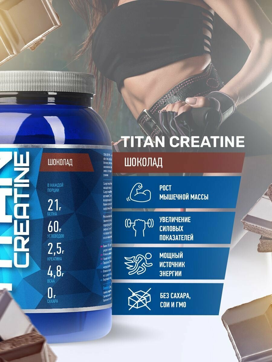 Гейнер Titan Creatine 4000 г/ набор массы веса/ Gainer MASS/ высокоуглеводный/ высококалорийный/ белковый/ шоколад/