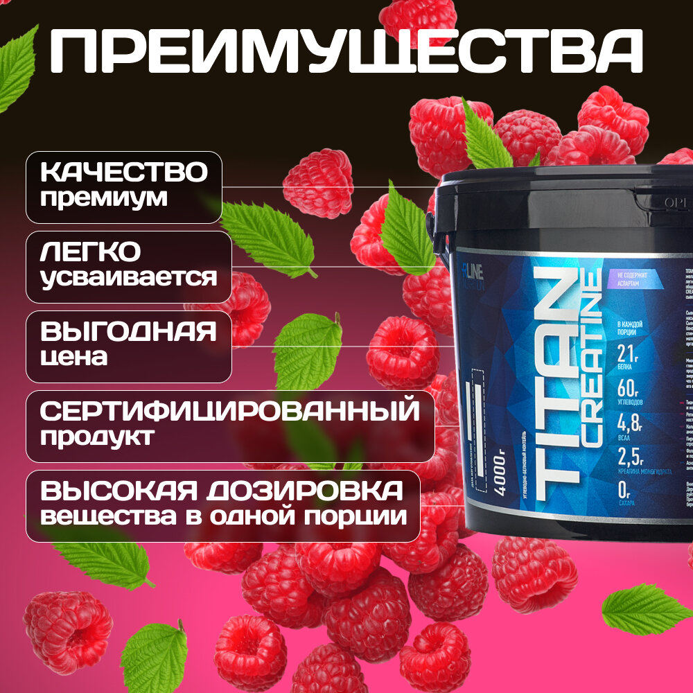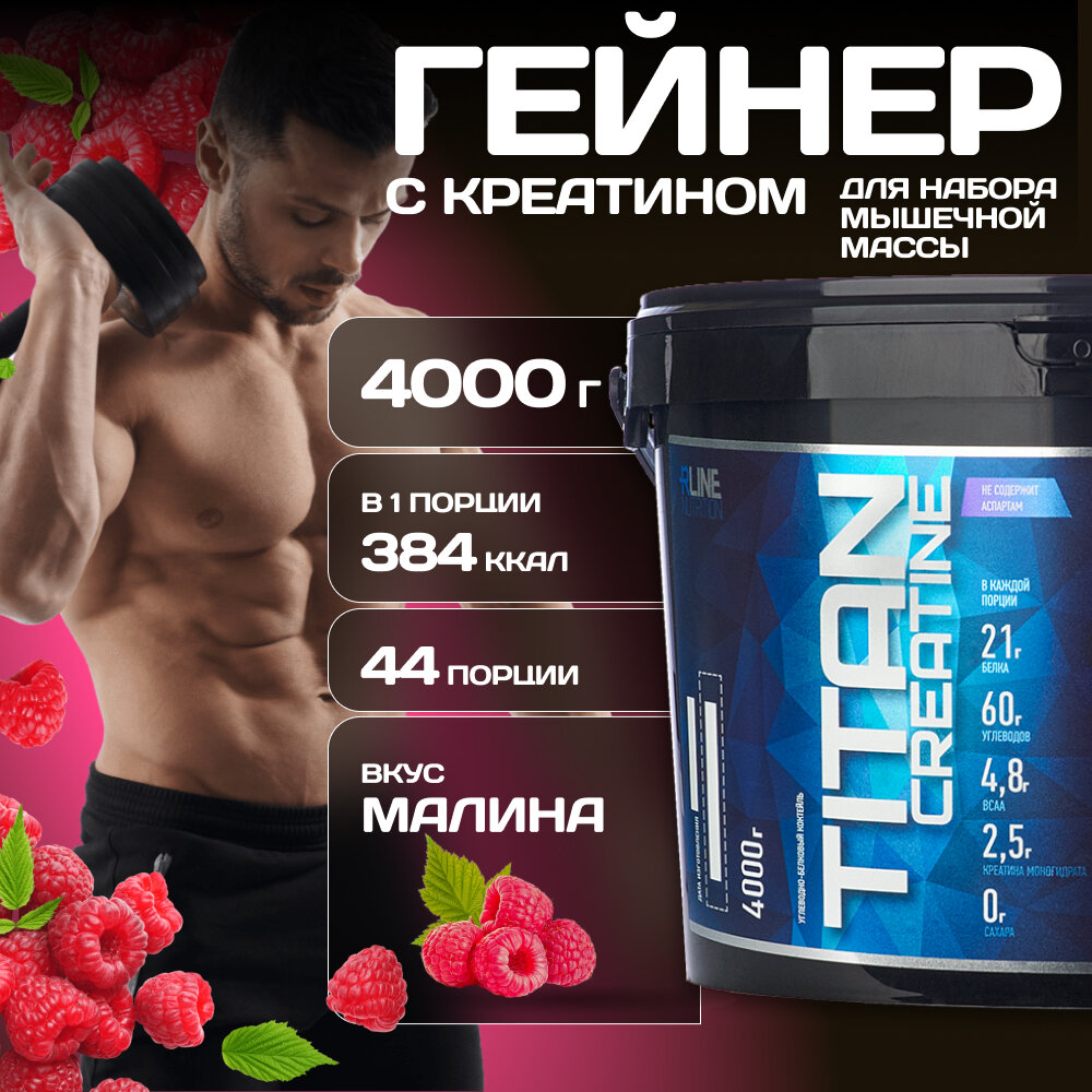 Гейнер Rline Titan Creatine, малина, 4000 г