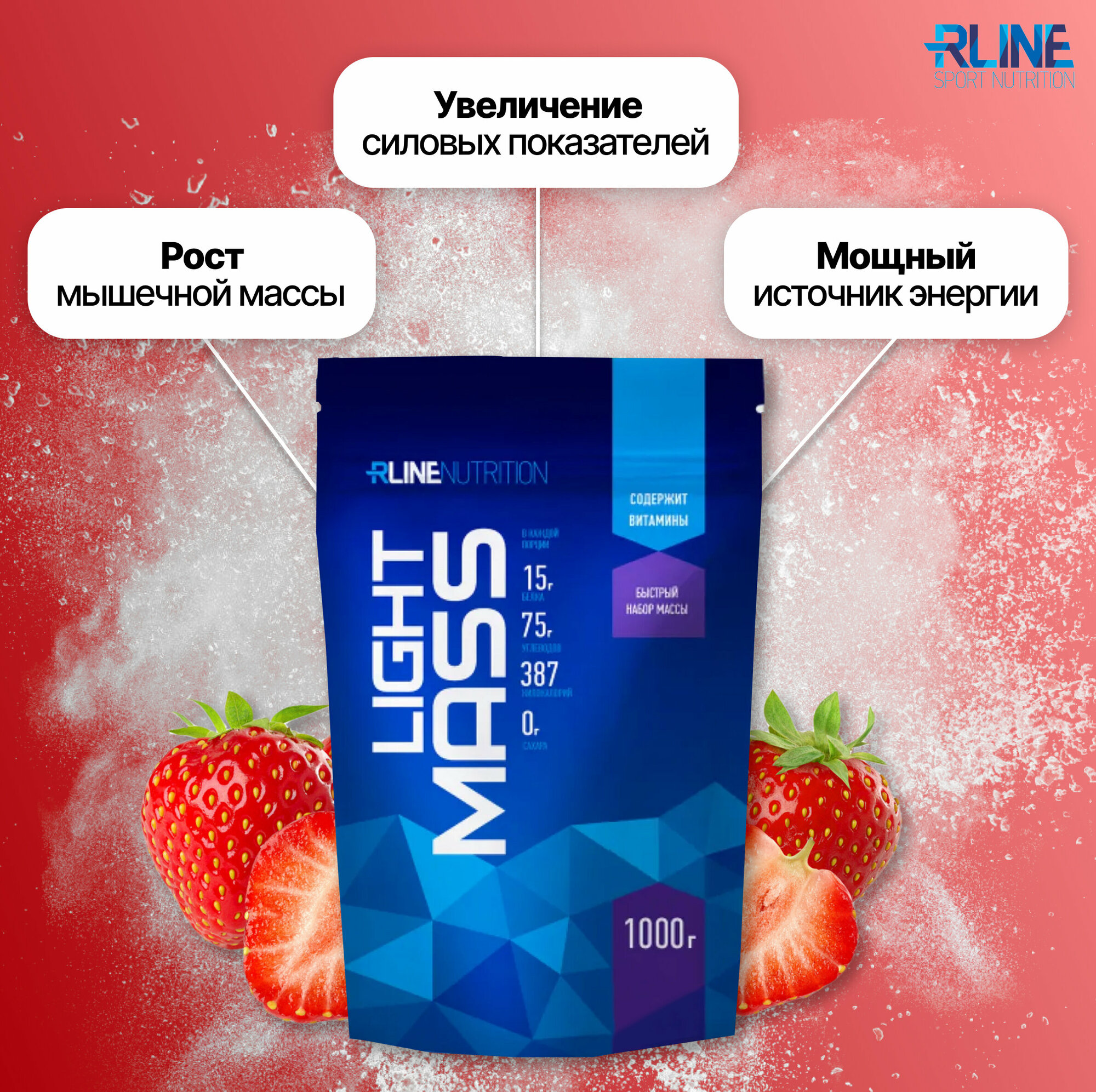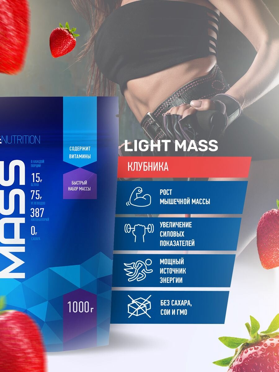 Высокоуглеводный гейнер Rline LIGHT MASS 1000 г (клубника)
