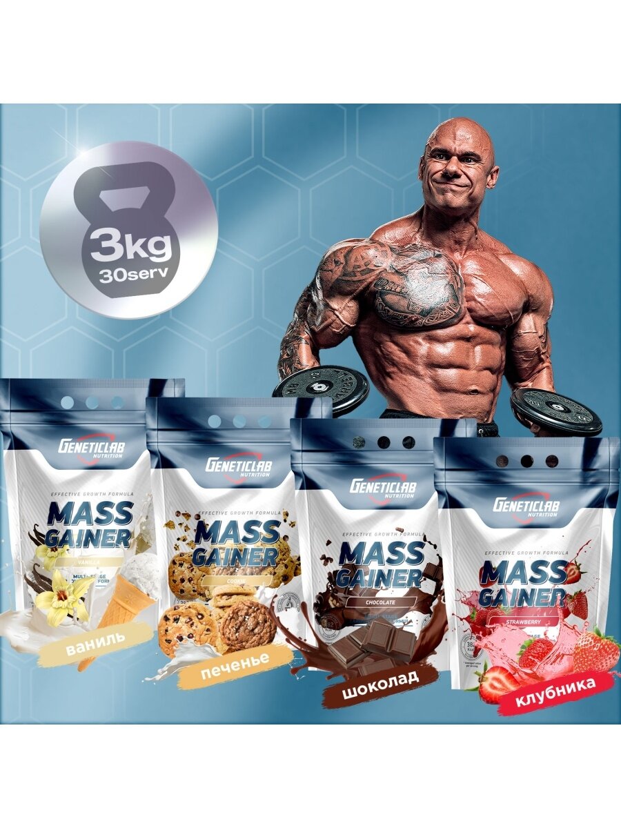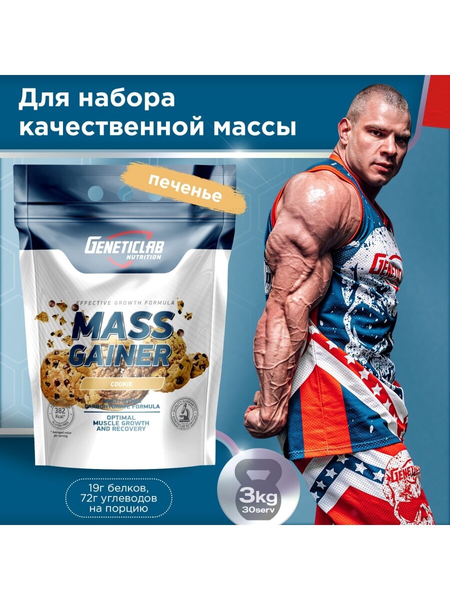 СохранитьГейнеры высокоуглеводные Geneticlab Nutrition Mass Gainer (3000 г) Печенье интересное: