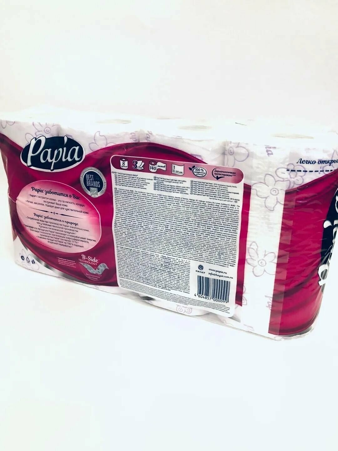 Papia Туалетная бумага трёхслойная Белая 8 рулонов