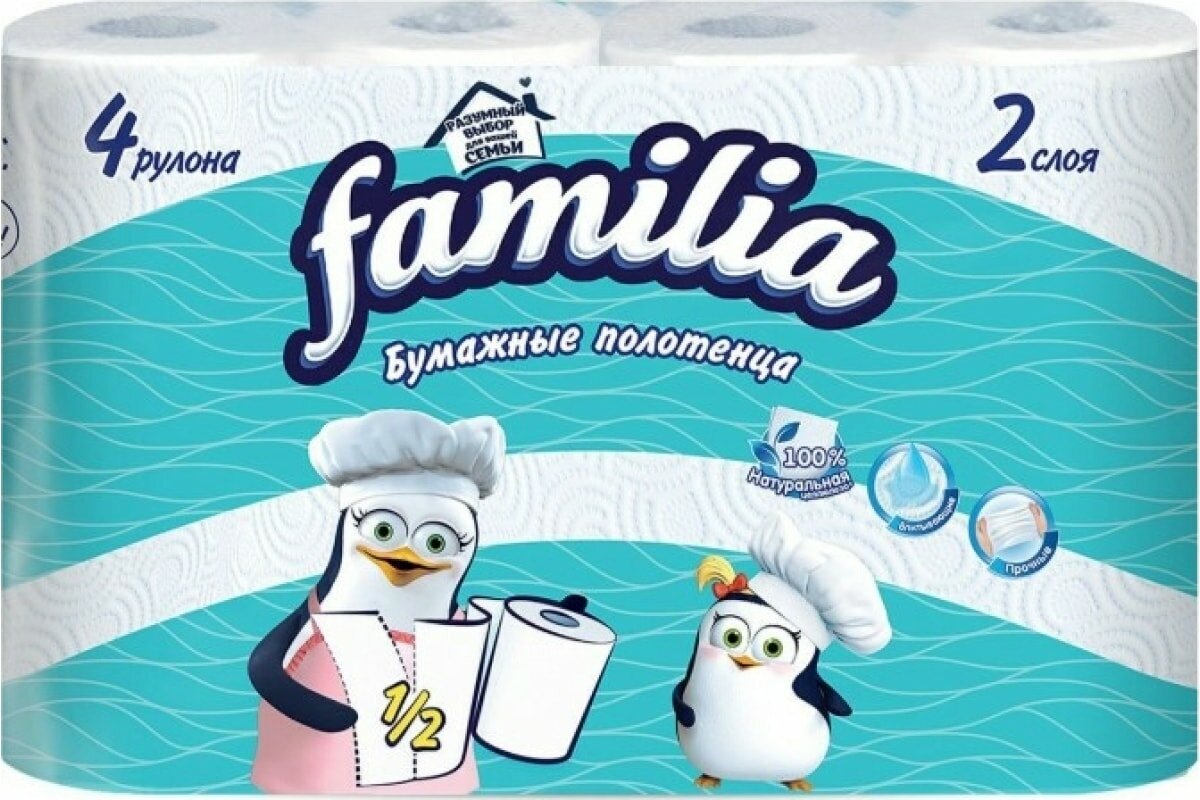 Бумажные полотенца Familia 2 слоя 4 рулона 1/2 листа