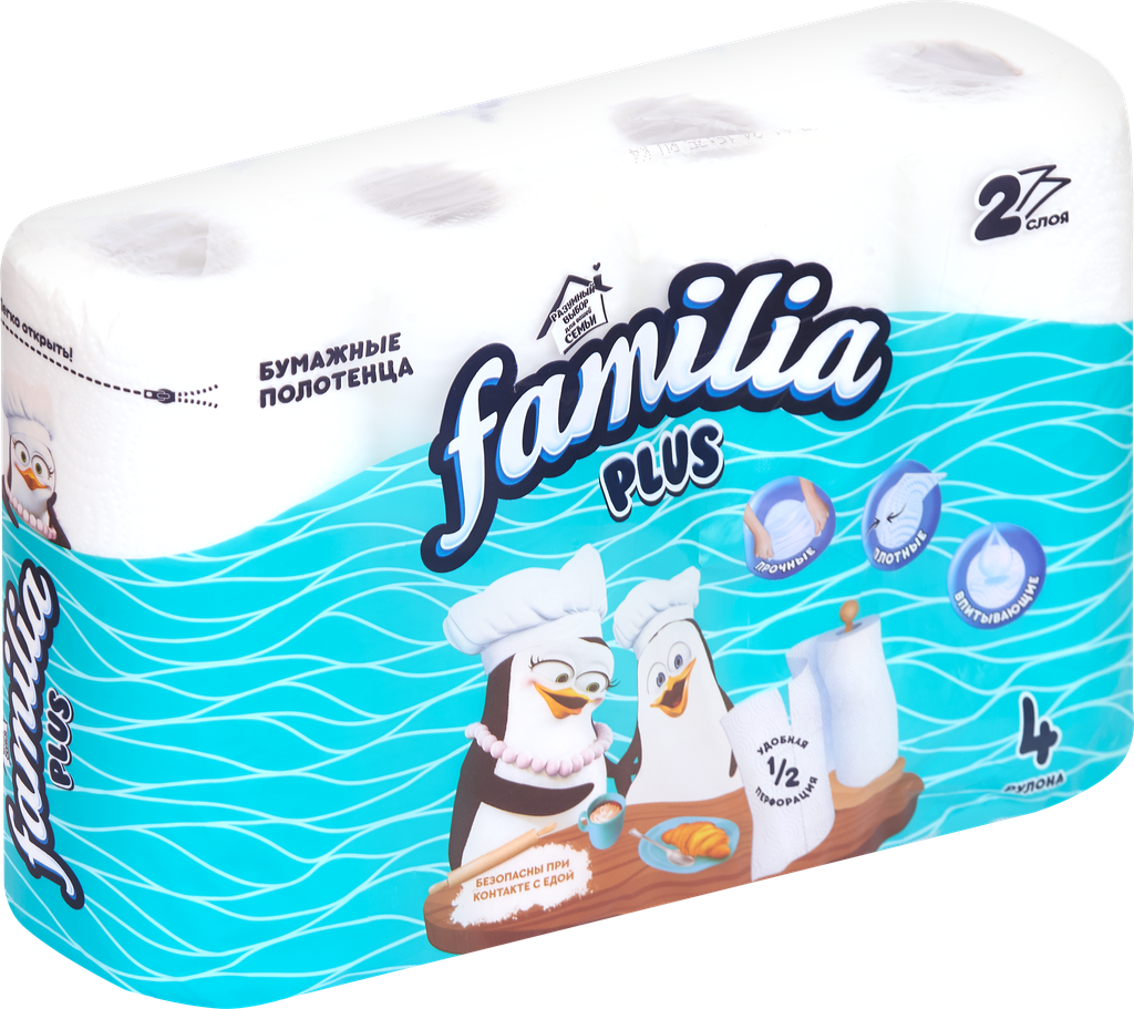 Бумажные полотенца FAMILIA 2 слоя, 4 рулона, 1/2 листа 1015031321