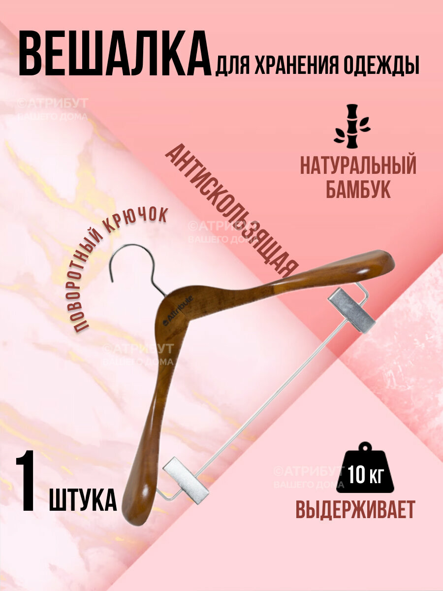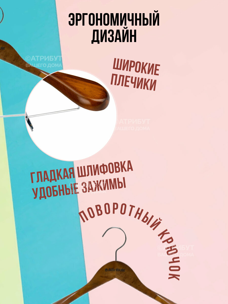 Вешалка-плечики для костюма с клипсами "STATUS" Attribute, натуральное дерево