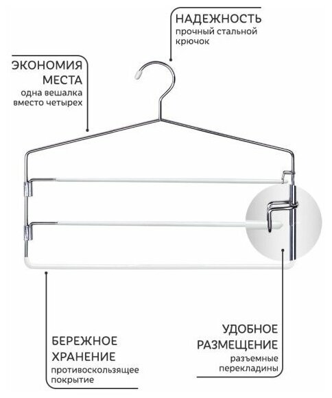 Вешалка для брюк Valiant, 3-х уровневая, с двумя разъемными нескользящими перекладинами, белая