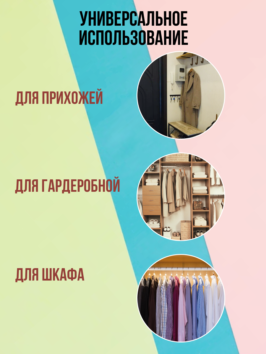 | Плюсы: | Удобные, вещи хорошо висят на вешалках, крючки крутятся, что очень удобно для размещения на перекладине, вешалки очень красивого цвета |
