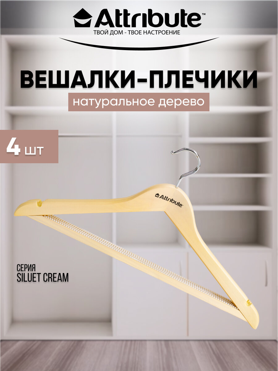 Вешалка-плечики ATTRIBUTE Siluet cream 4 шт 44 см AHP224