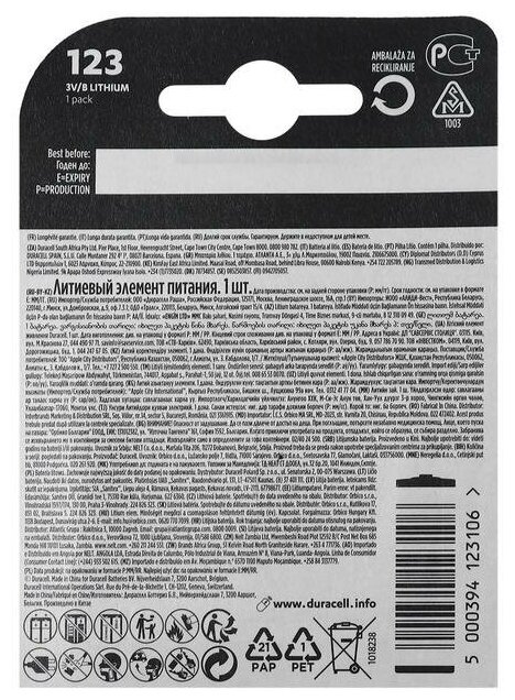Ниже Вы можете прочитать отзывы на Батарейка Duracell 123, в упаковке: 1 шт., ознакомится с подробными характеристиками, посмотреть интересные обзоры и фотографии на Батарейка Duracell 123, в упаковке: 1 шт..