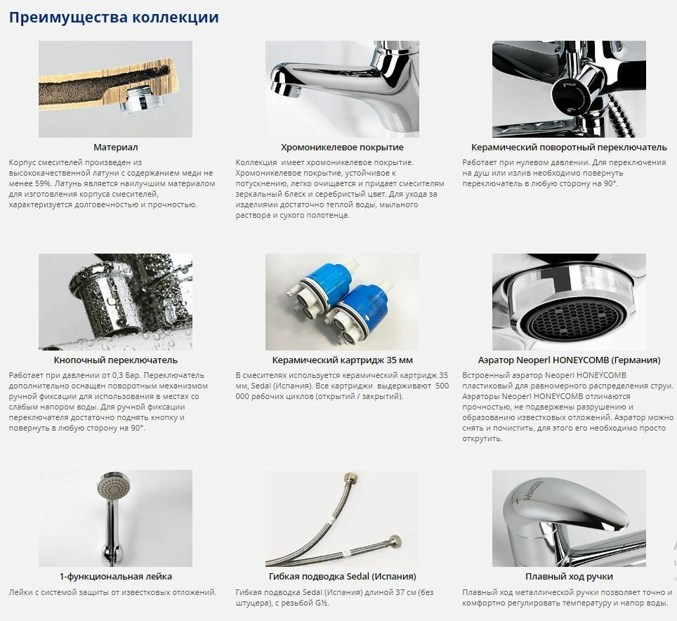 | Особенности | S-образные эксцентрики / держатель душевой лейки |