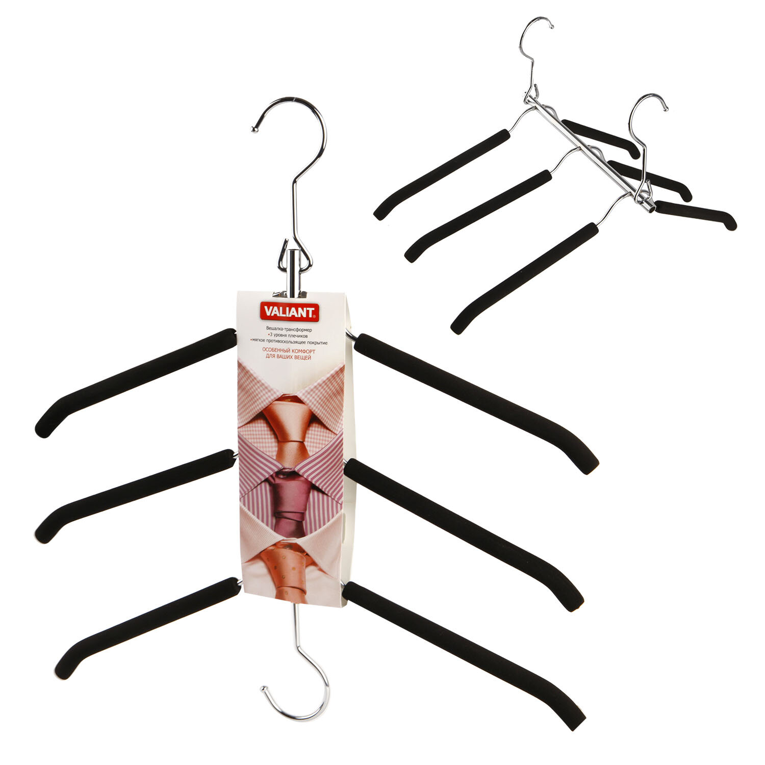 Вешалка Valiant трансформер с мягким противоскользящим покрытием 50336, черный интересное: