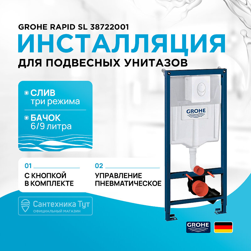 Инсталляция для унитаза Grohe Rapid SL 38722001 с клавишей