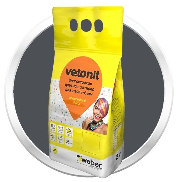 СохранитьЗатирка VETONIT weber (ветонит) decor G101 влагостойкая цементная цвет антрацит 2кг 1016204 интересное: