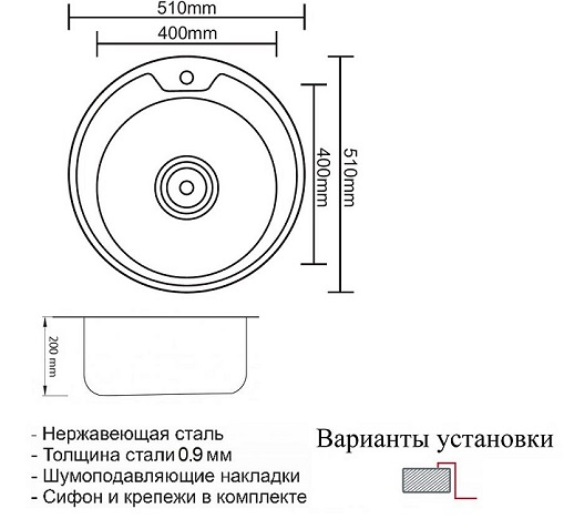 СохранитьZorG Кухонная мойка SZR-510 XL-BRONZE, PVD покрытие бронза, круглая, с платформой для смесителя, с сифоном и выпуском, накладная интересное: