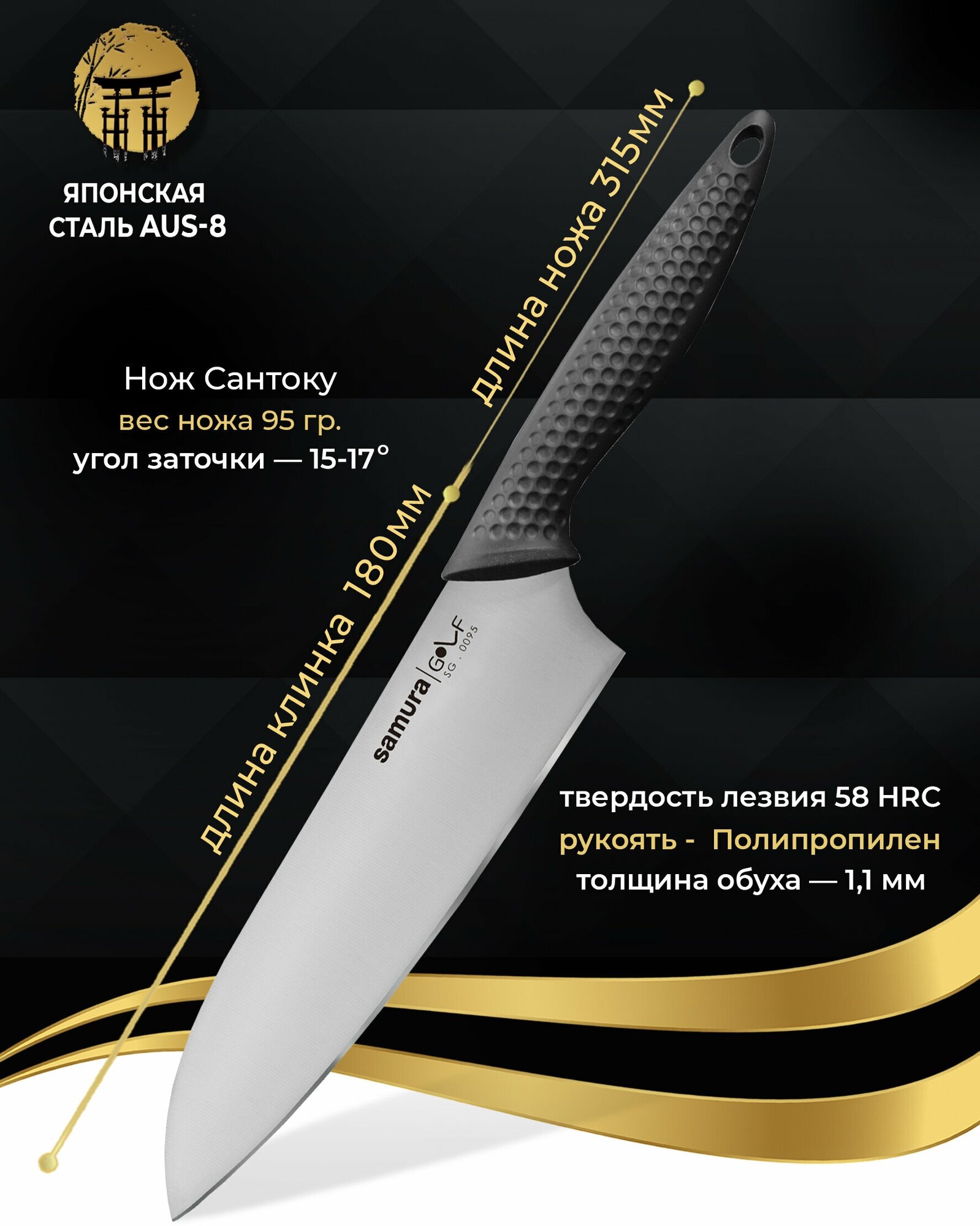 SG-0095/K Нож кухонный "Samura GOLF" Сантоку 180 мм, AUS-8