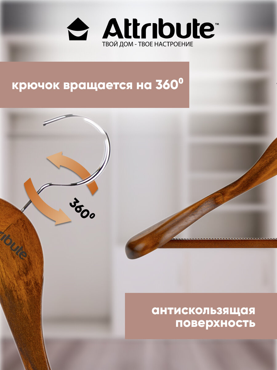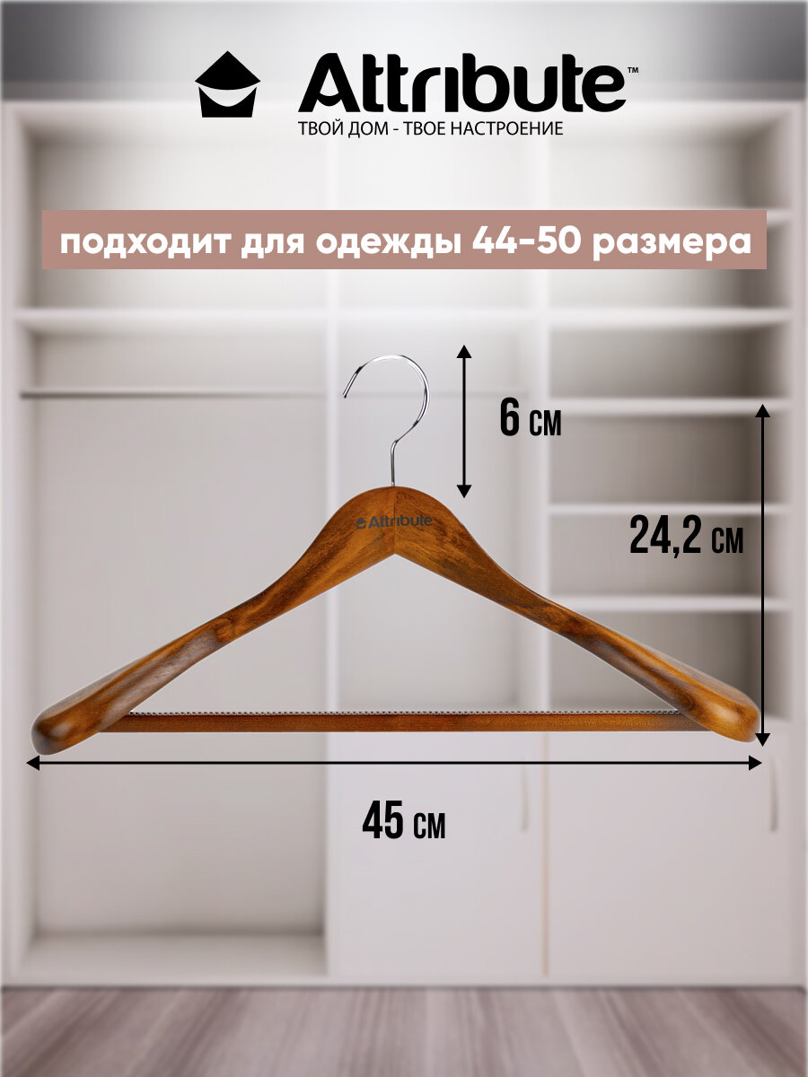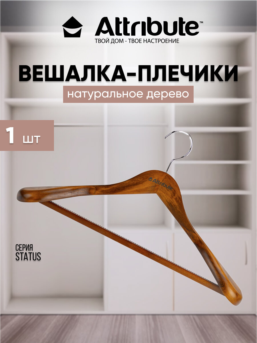 Вешалка - плечики для верхней одежды Attribute Hanger "Status", цвет: дерево, длина 44 см - Атрибут вашего дома