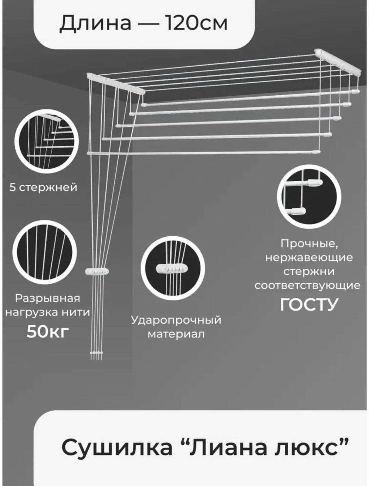 Сушилка для белья потолочная ЛДН Лиана Люкс, 1,2 м интересное: