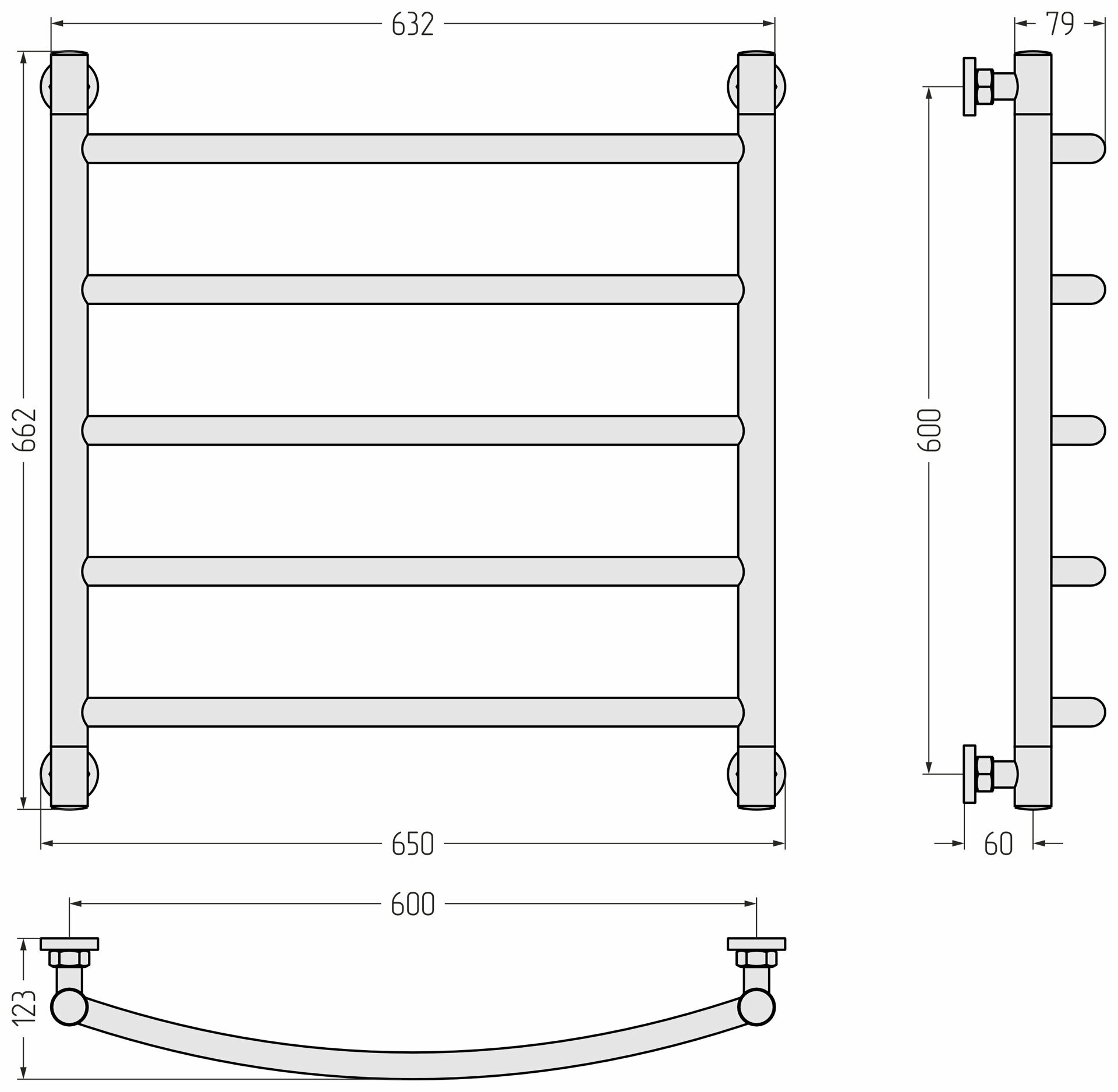 Полотенцесушитель водяной Сунержа Галант+ 600х600 Без покрытия 00-0200-6060