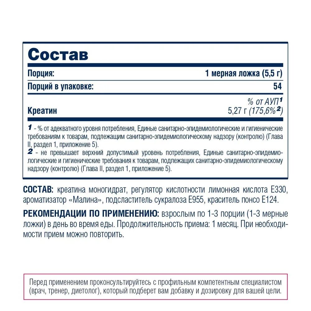 | Форма креатина | креатин моногидрат |