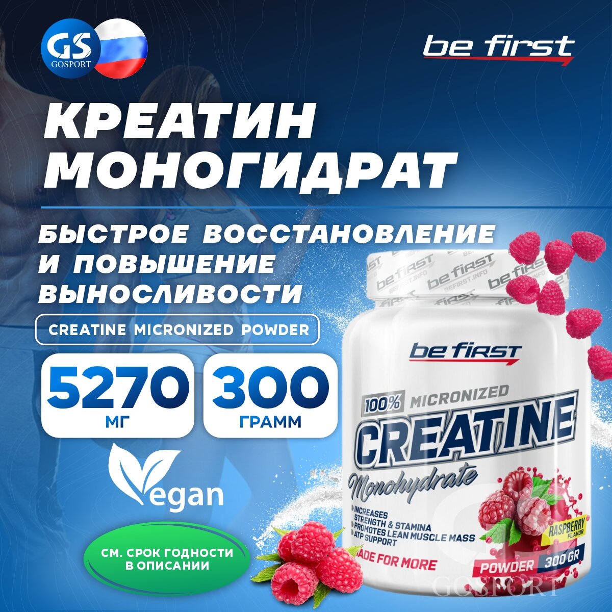 BeFirst, Micronized Creatine Monohydrate Powder (300 г) (малина)