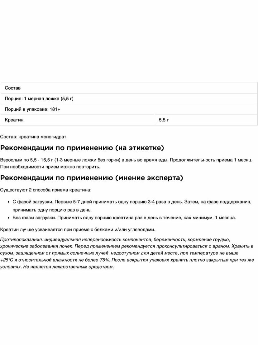 | Плюсы: | Отличный креатин за свои деньги, работает |