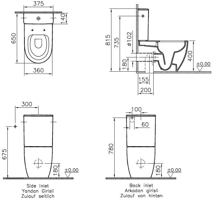 Унитаз-компакт VitrA Sento Open-Back 9830B003-7204 безободковый