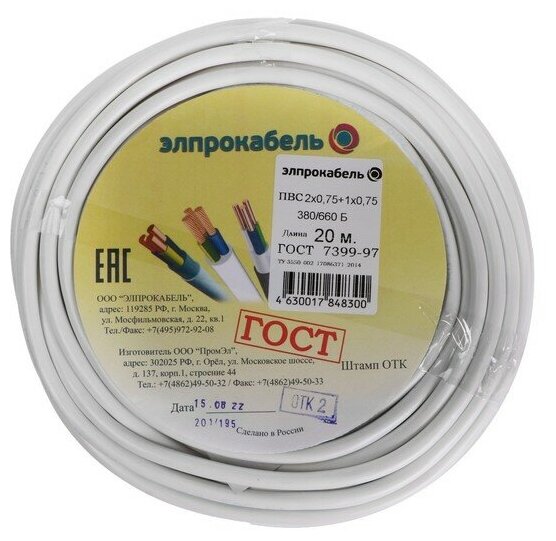 Провод гибкий круглый ПромЭл ПВС, 3х0.75, 20 м, ГОСТ интересное: