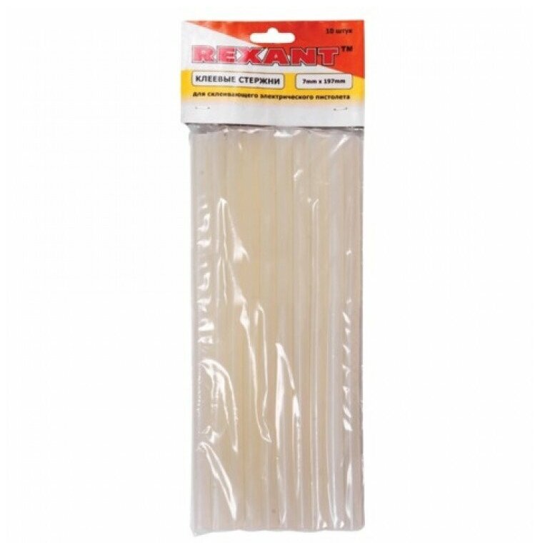 Стержни для клеевого пистолета REXANT диаметр 7 мм, длина 197 мм, прозрачные, 10 шт, европодвес