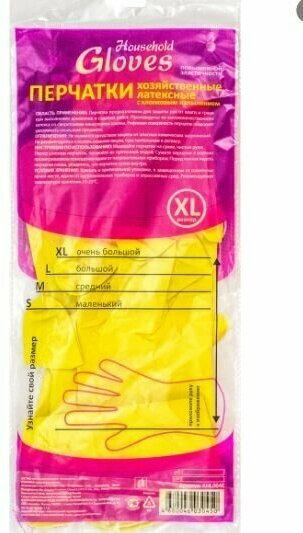 Купить Перчатки латексные Household Gloves, с хлопковым напылением, размер 10 (XL), 1 пара