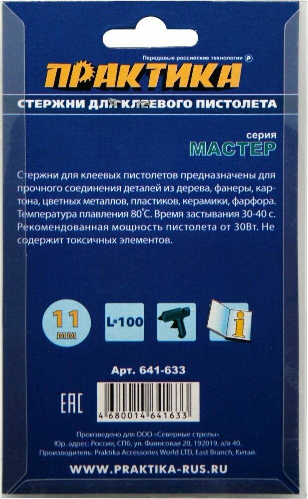 Клей ПРАКТИКА для термопистолета 11х100мм 6 шт. в блистере