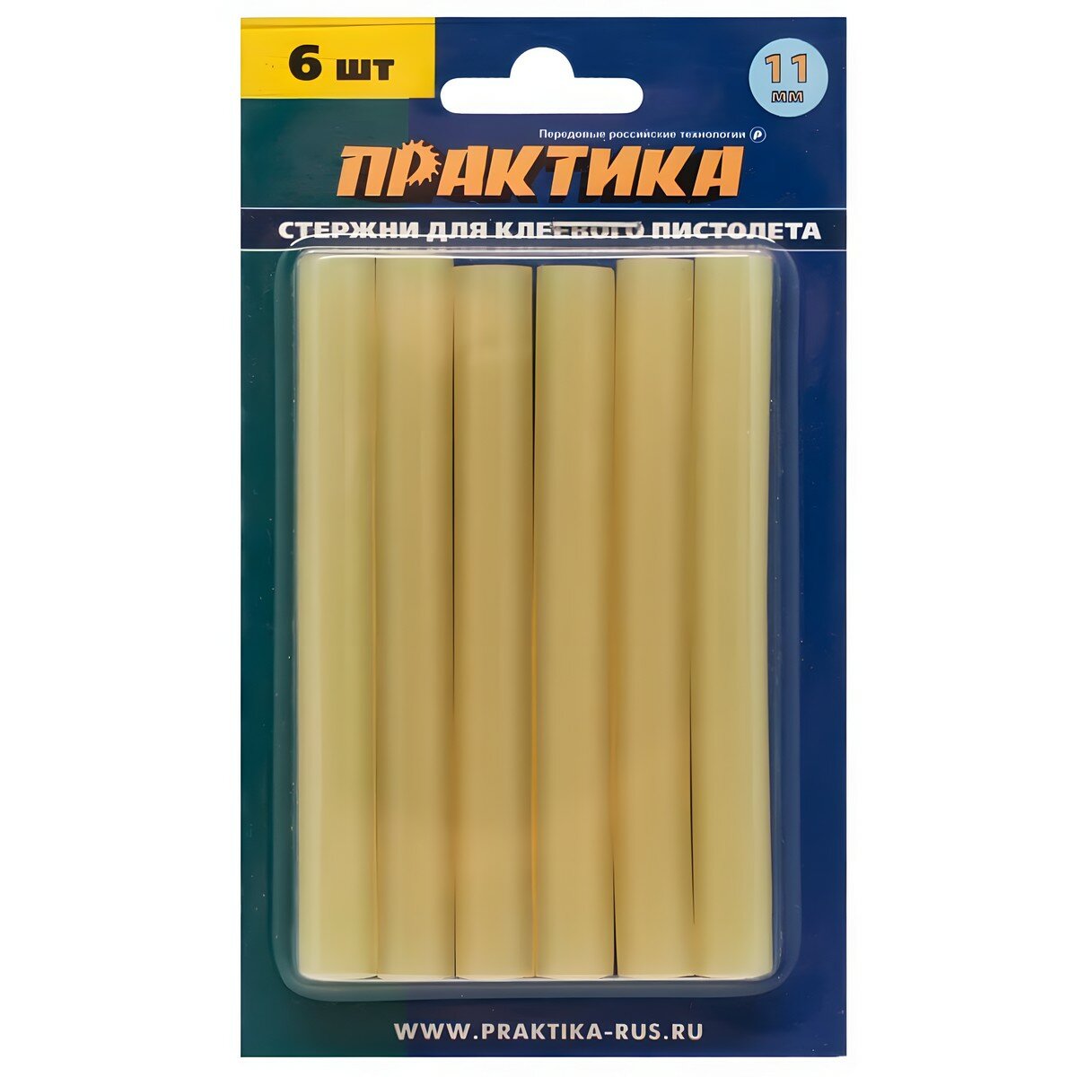 Клей для клеевого пистолета ПРАКТИКА желтый, прозрачный, 11 х 100 мм, 6 шт / блистер (641-633)