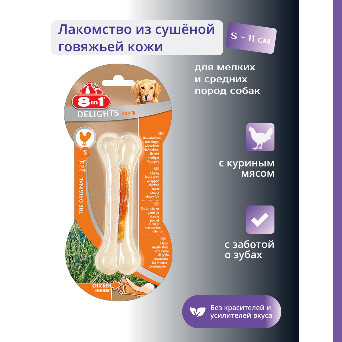 8in1 DELIGHTS Strong S косточка сверхпрочная с куриным мясом для мелких и средних собак 11 см
