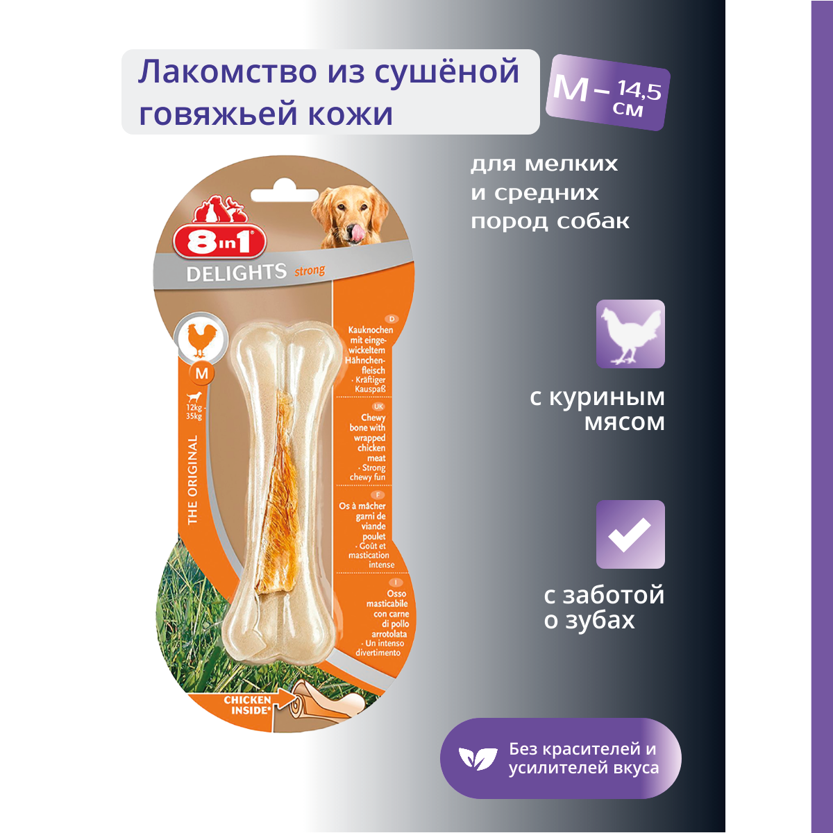 8in1 DELIGHTS Strong M косточка сверхпрочная с куриным мясом для средних и крупных собак 14,5 см