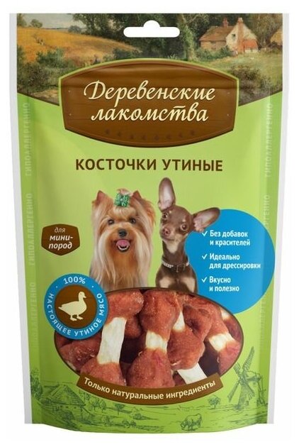 Деревенские лакомства Лакомство для собак мини-пород Косточки утиные, 55 г, 2 уп
