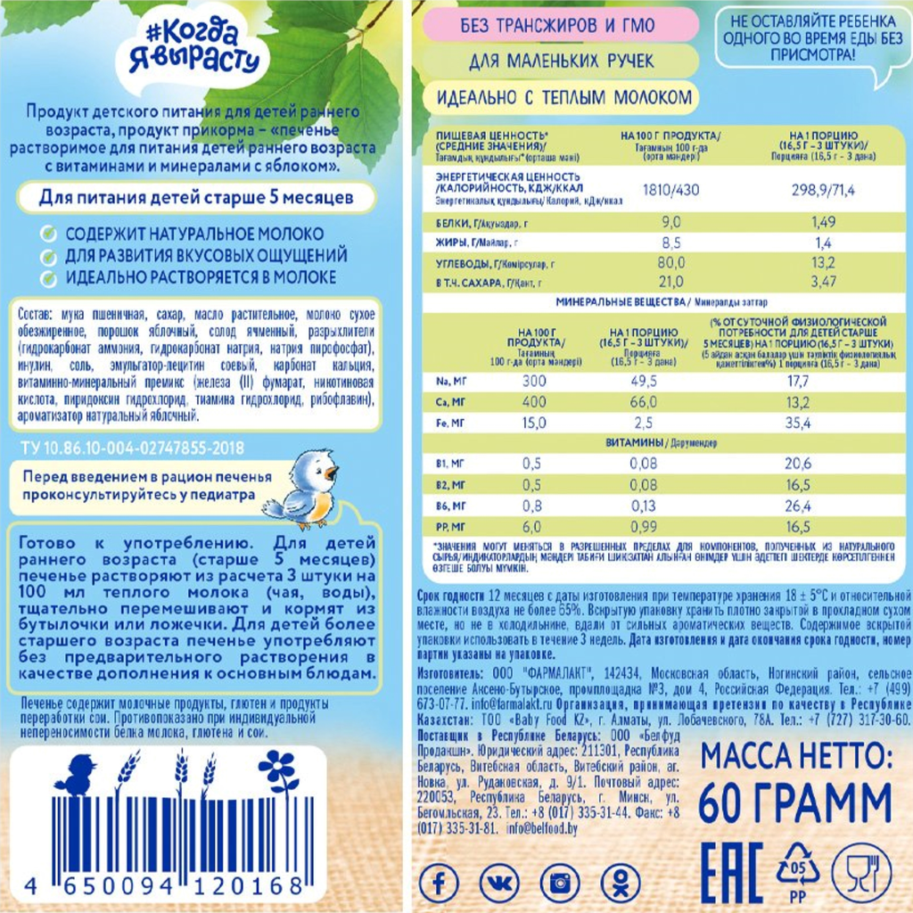 Когда Я вырасту Детское Печенье с Яблоком {с 5 мес} 60г интересное: