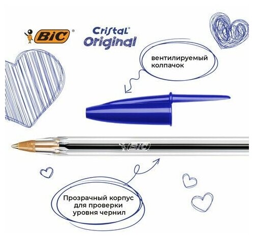 BIC Набор шариковых ручек Cristal Original, 1 мм (8308601/8308591), синий цвет чернил