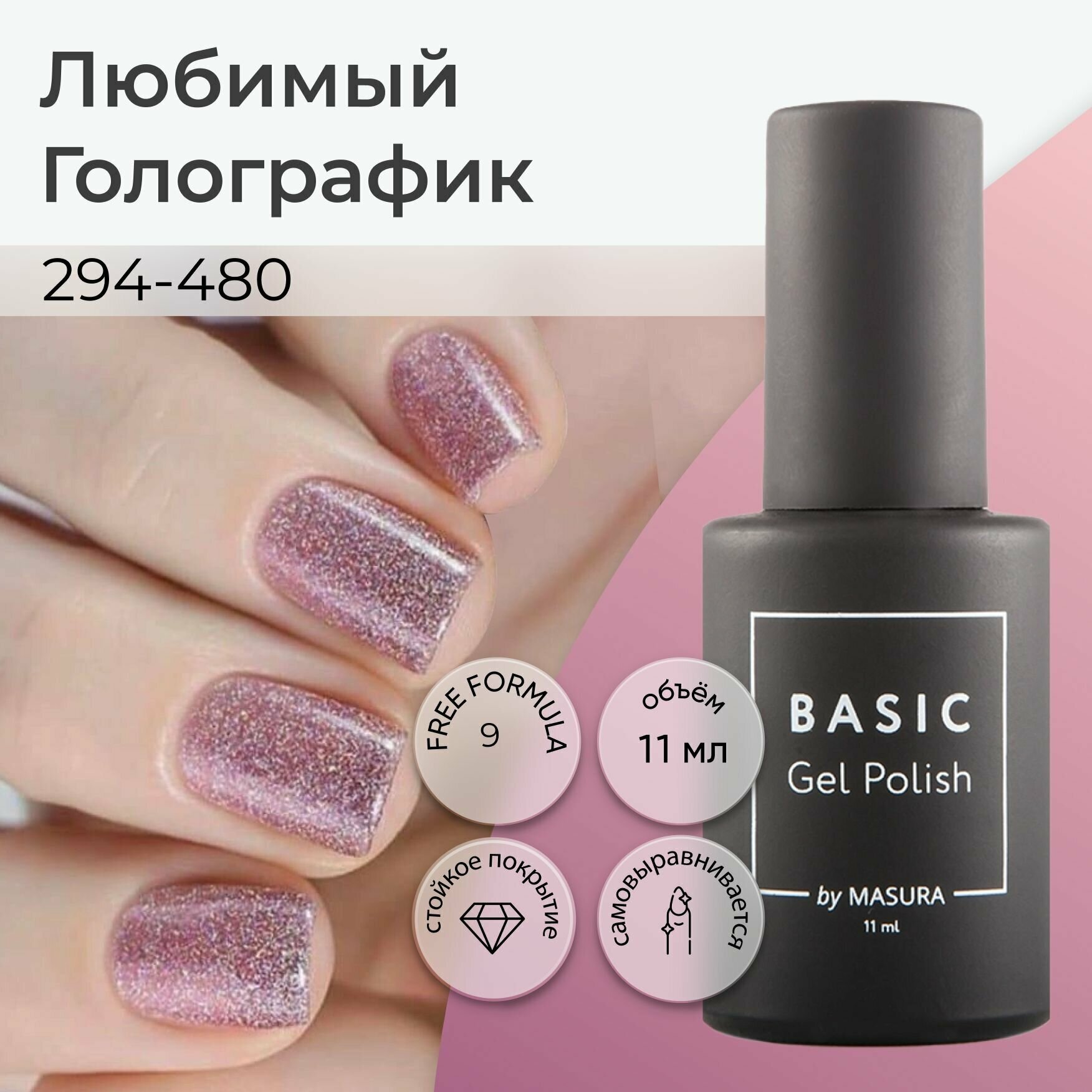 Купить Гель-лак BASIC Любимый Голографик, 11 мл Розовый