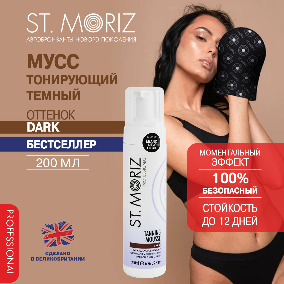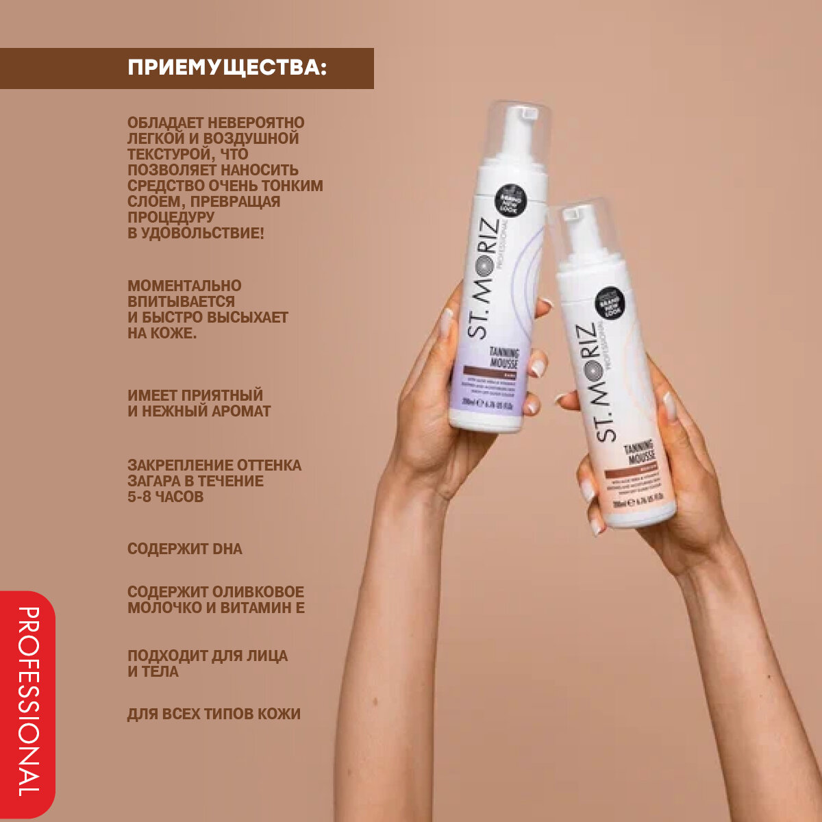 St. Moriz Автобронзант мусс тонирующий профессиональный, естественный бронзовый загар, автозагар для тела и лица, бронзатор, темный оттенок, 200 мл